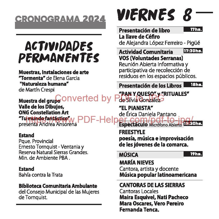 La cita es en el Centro Cultural de Sierra de la Ventana y los galpones recuperados del ex Ferrocarril: lecturas, recitales, danzas, intervenciones del espacio público, presentaciones de libros, espectáculos para las infancias y encuentro entre vecinos y vecinas de la comarca, confluirán para disfrutar del intercambio con visitantes de diferentes puntos del país.
